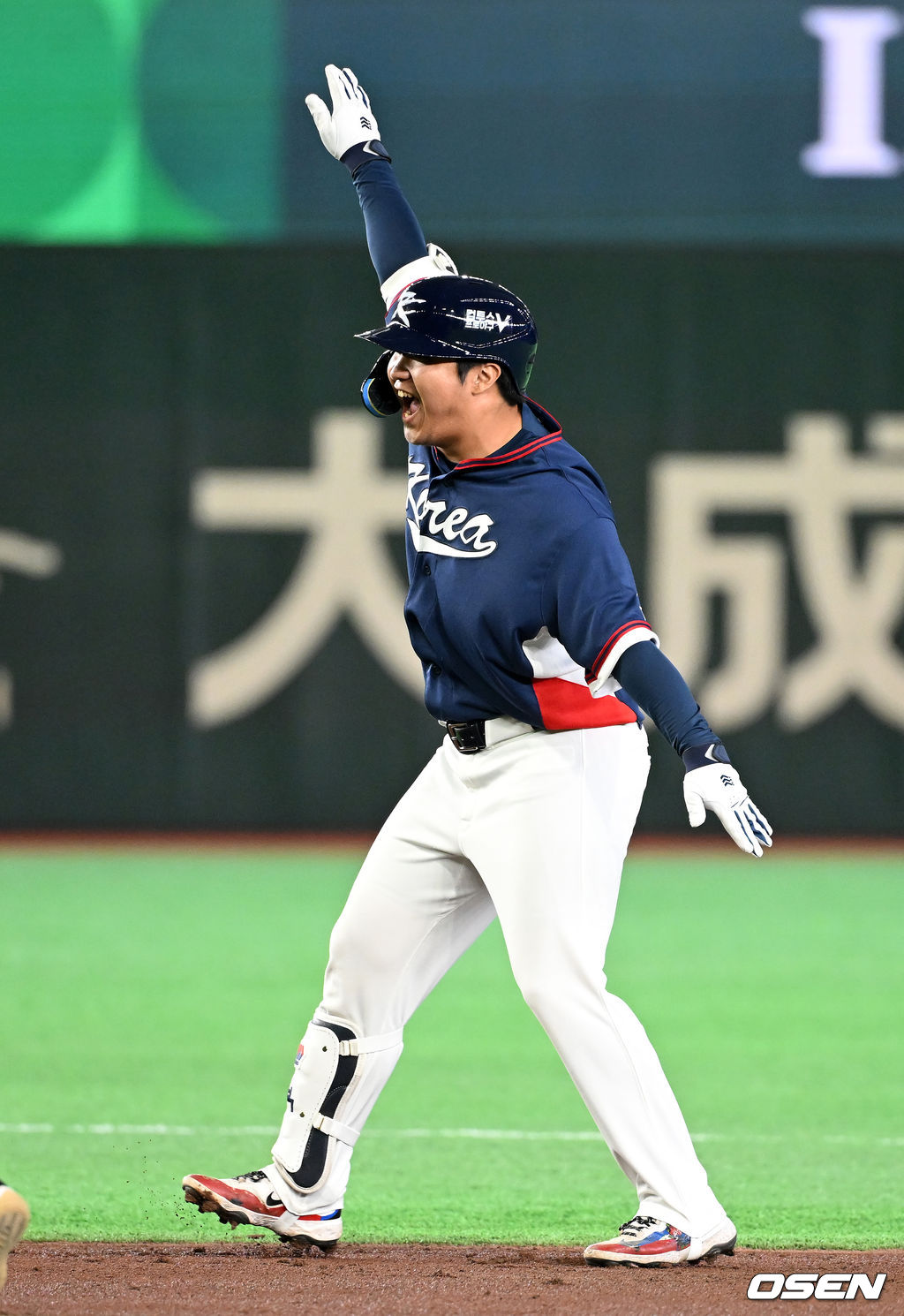 1회초 2사 1,2루에서 한국 문보경이 2타점 적시 좌중간 2루타를 날리며 세리머니를 하고 있다. 2026.03.07 /spjj@osen.co.kr
