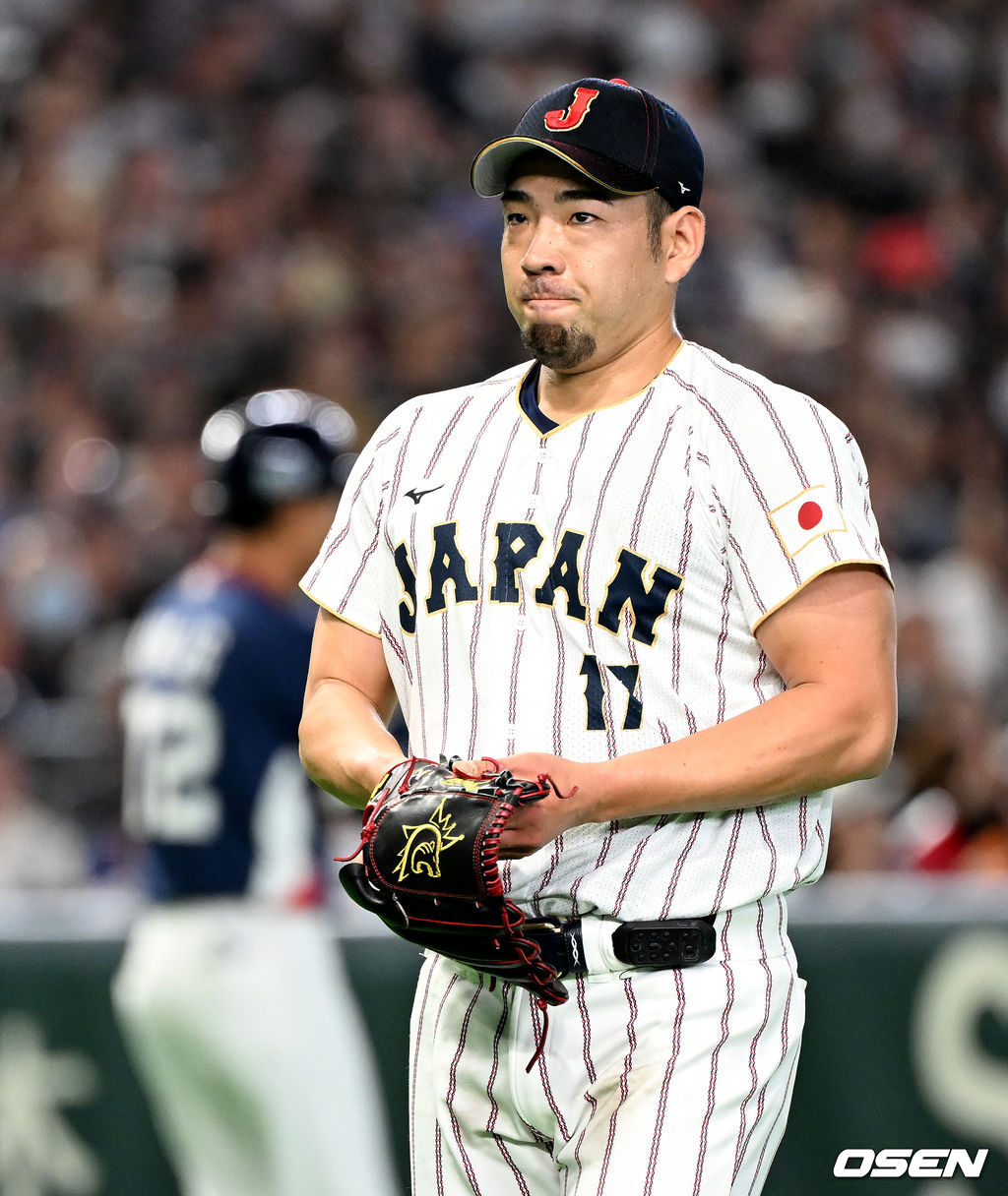 1회초 수비에서 3실점을 허용한 일본 기쿠치가 아쉬워하고 있다. 2026.03.07 /spjj@osen.co.kr