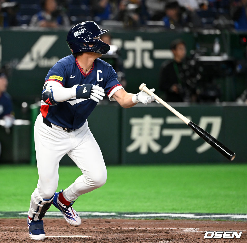8회초 무사에서 한국 이정후가 중견수 왼쪽 2루타를 날리고 있다. 2026.03.07 /spjj@osen.co.kr