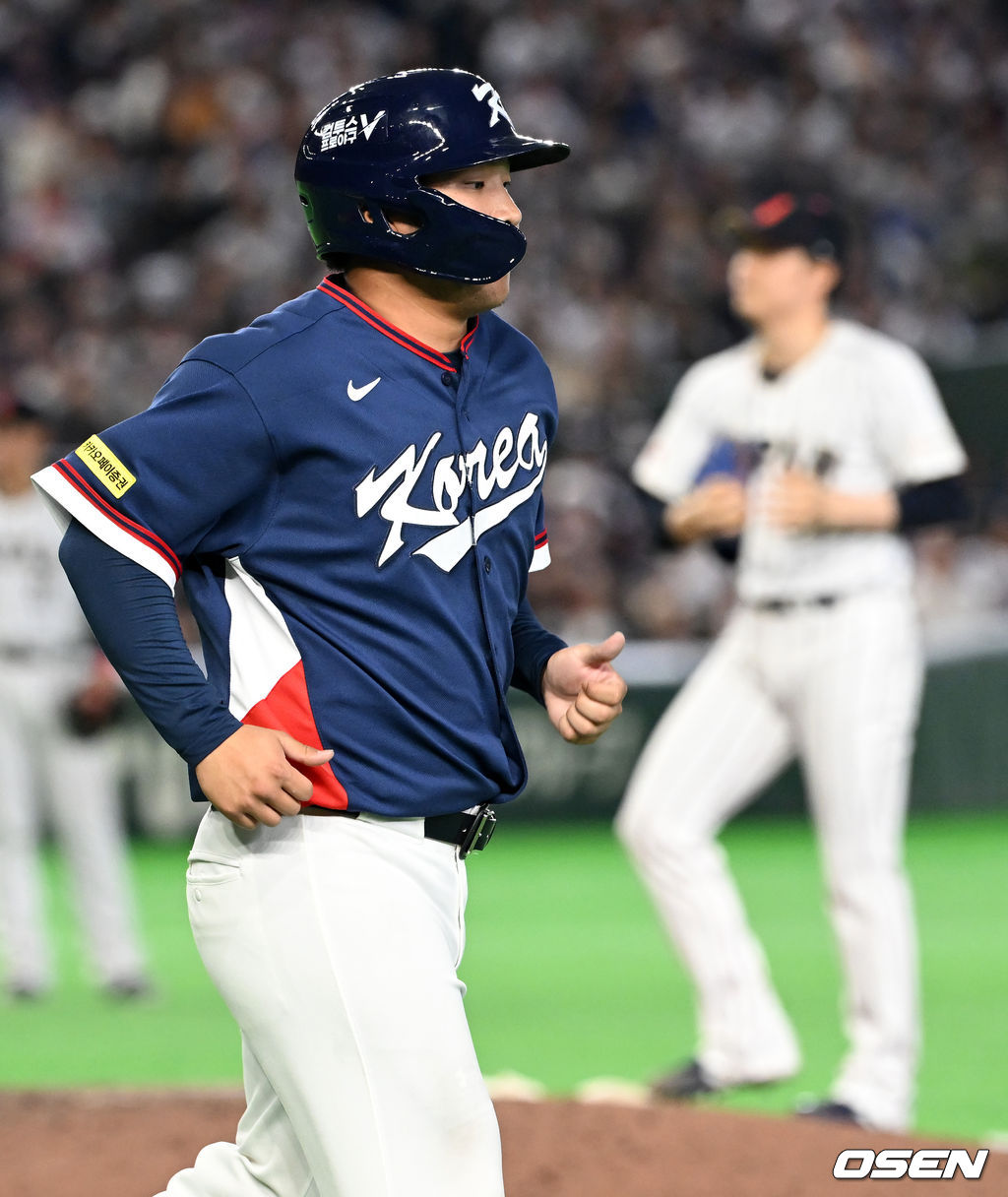 8회초 2사 2루에서 한국 문보경이 볼넷으로 출루하고 있다. 2026.03.07 /spjj@osen.co.kr