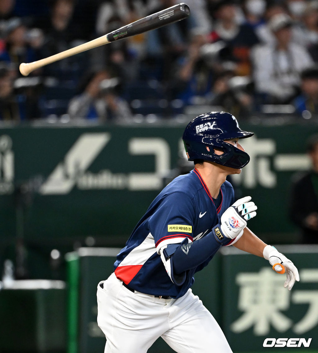 8회초 2사 1,2루에서 한국 김주원이 1타점 중전 적시타를 날리고 있다. 2026.03.07 /spjj@osen.co.kr