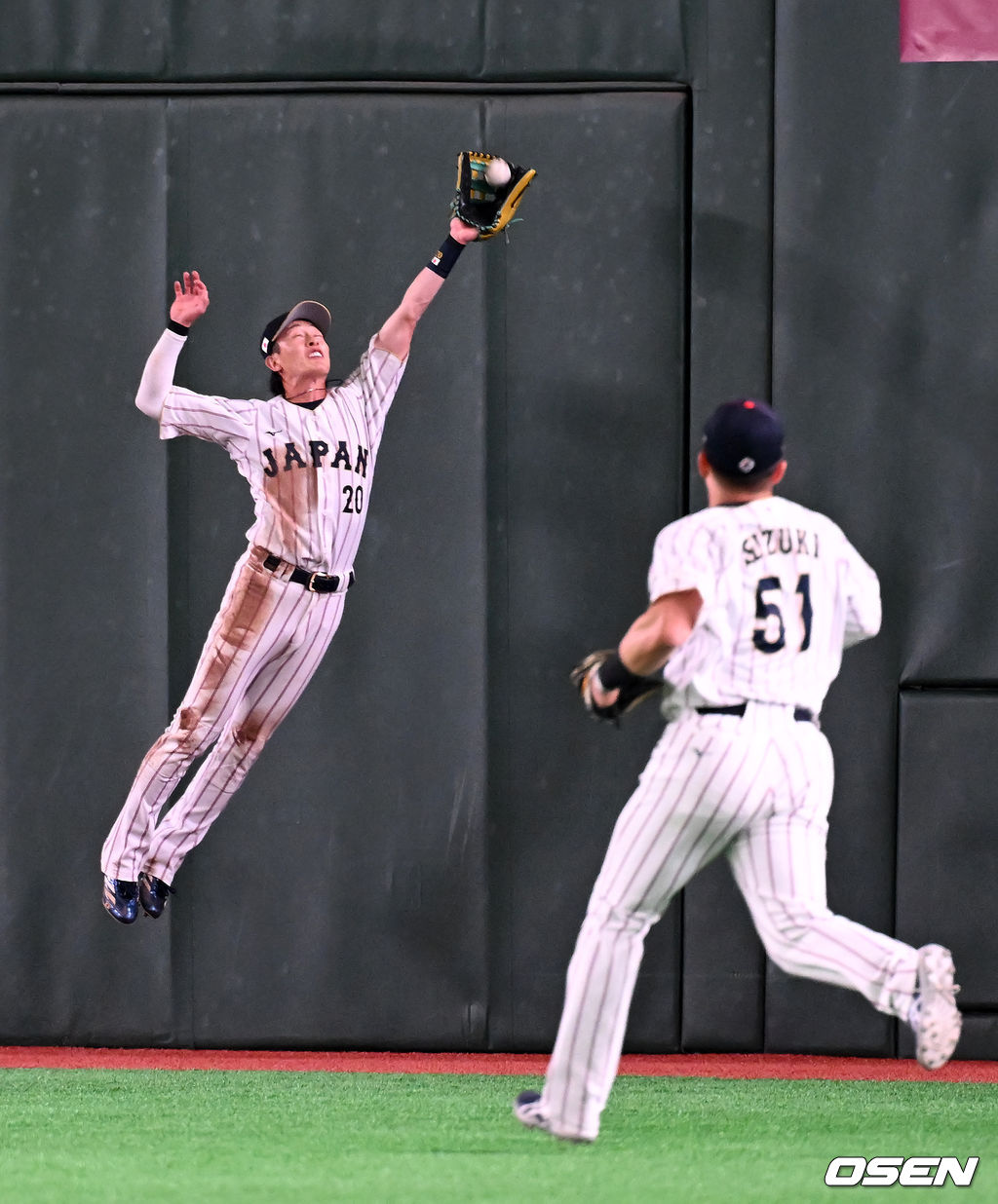 9회초 1사에서 일본 슈토가 한국 저마이 존스의 안타성 타구를 점프 캐치하고 있다. 2026.03.07 /spjj@osen.co.kr