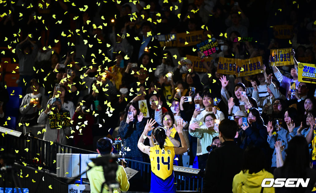 현대건설 양효진이 은퇴식에서 팬들에게 인사를 하고 있다. 2026.03.08 /cej@osen.co.kr