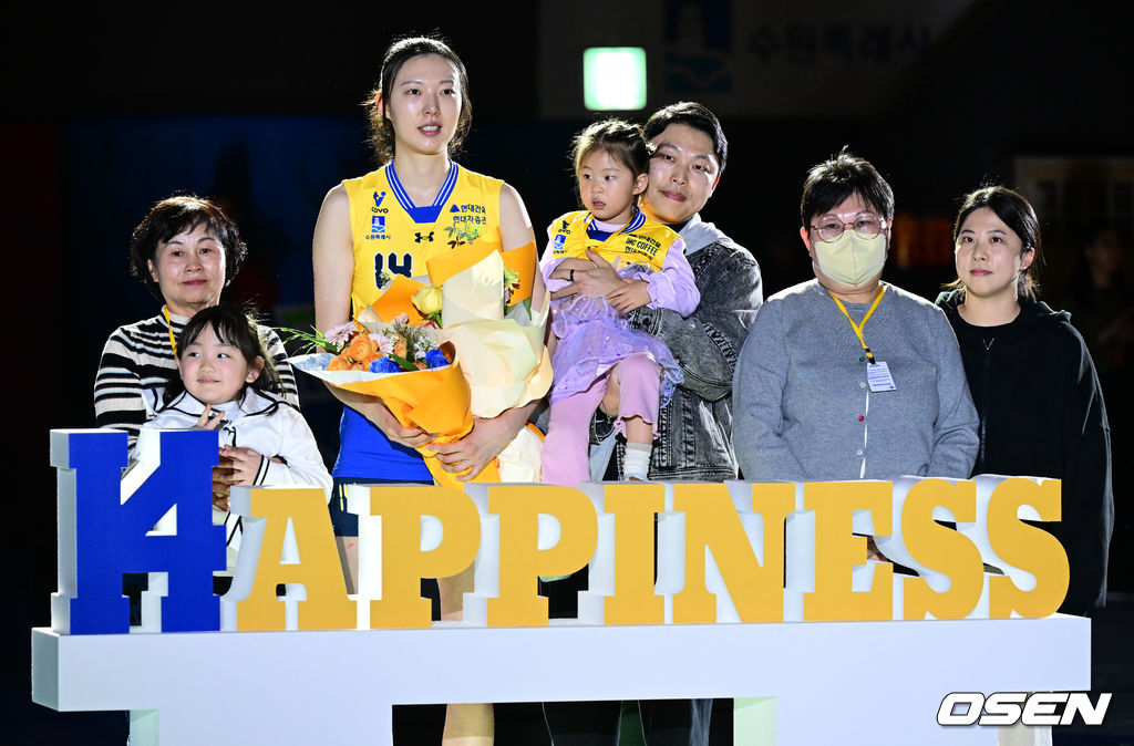 현대건설 양효진이 은퇴식에서 가족과 기념촬영을 하고 있다. 2026.03.08 /cej@osen.co.kr