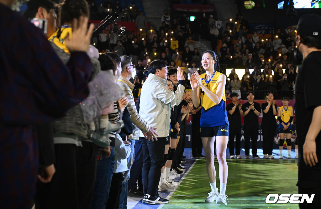 현대건설 양효진이 은퇴식에서 하이파이브를 하고 있다. 2026.03.08 /cej@osen.co.kr