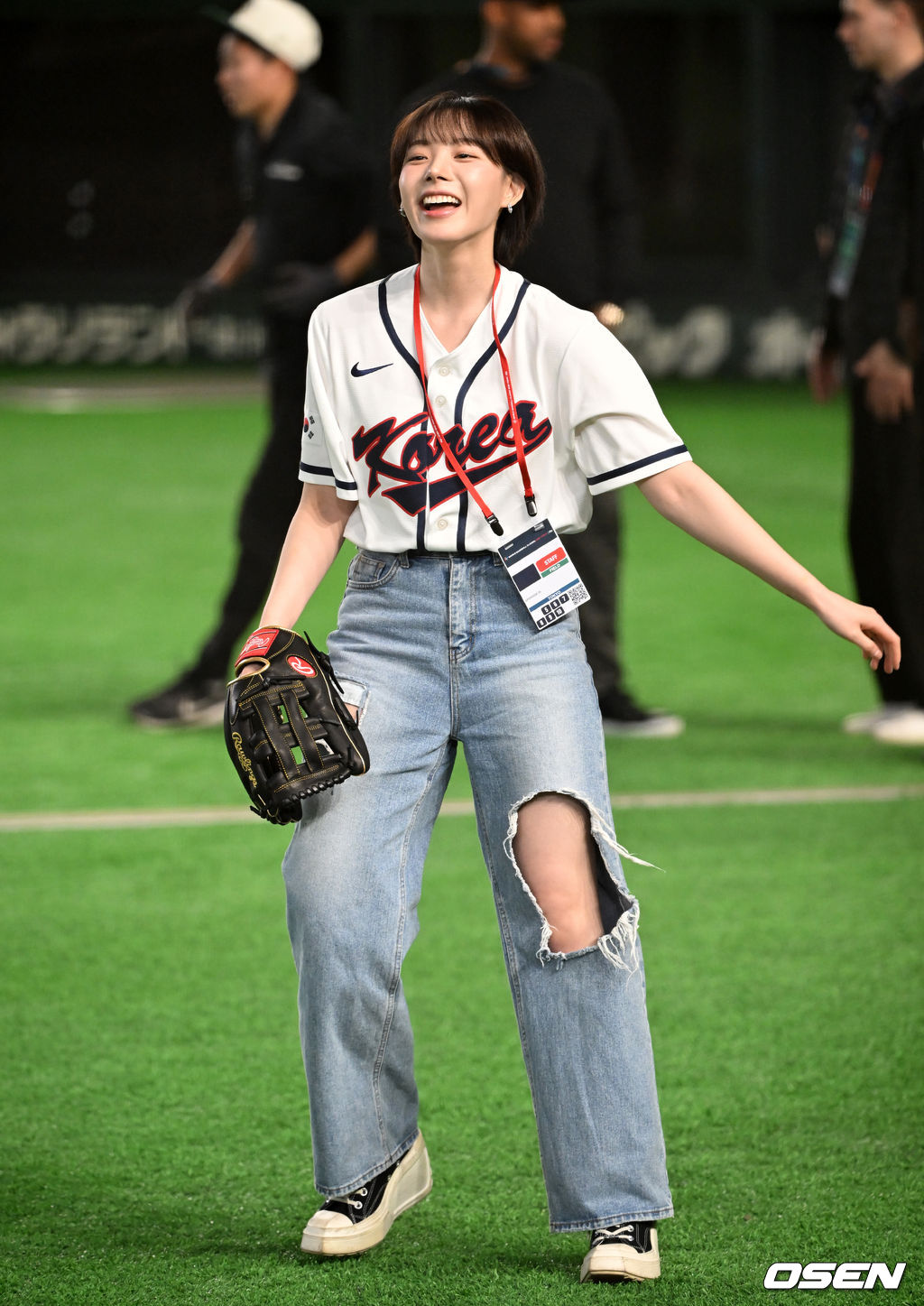 경기에 앞서 치어리더 하지원이 투구 연습을 하고 있다. 2026.03.09 /spjj@osen.co.kr