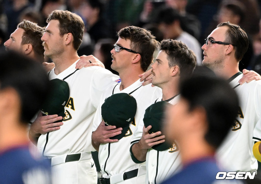 경기에 앞서 호주 알렉스 웰스가 국가를 부르고 있다. 2026.03.09 /spjj@osen.co.kr