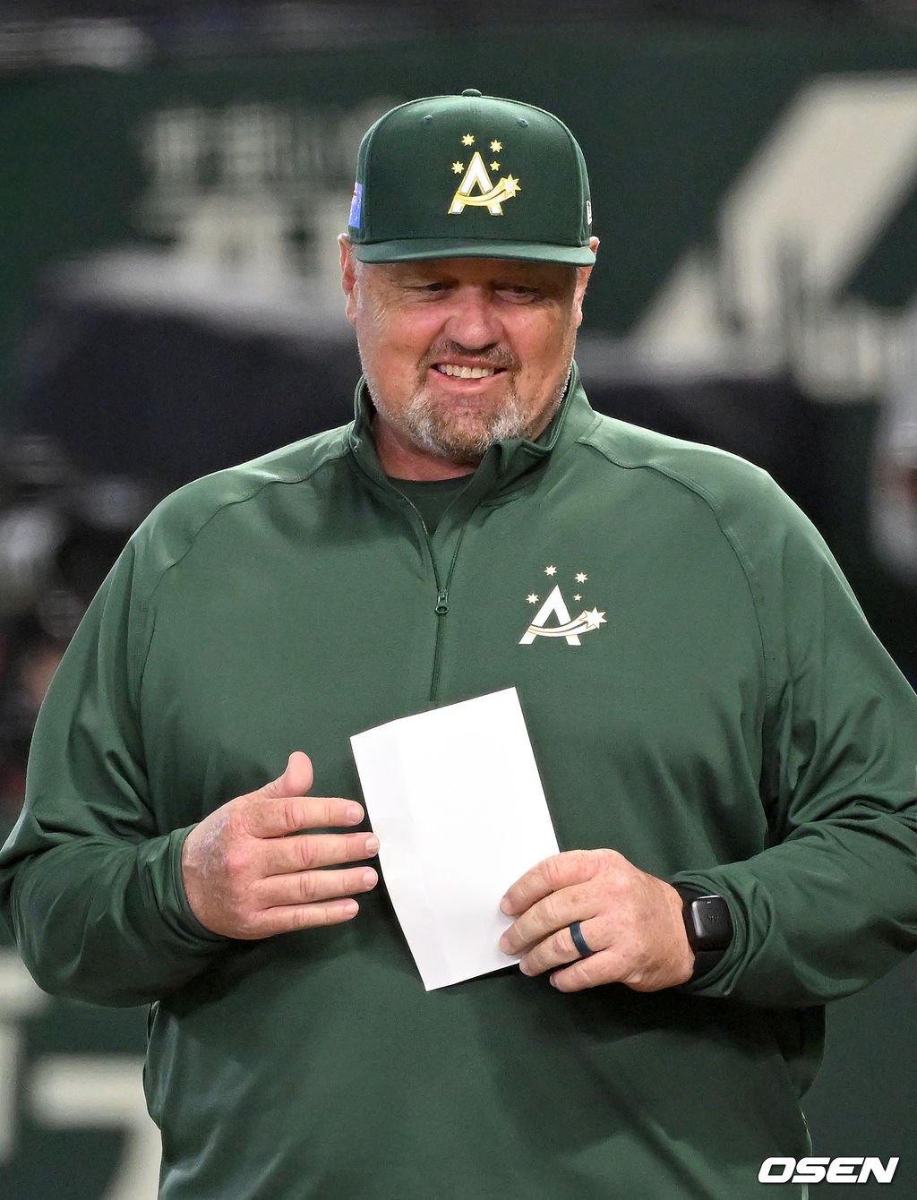 경기에 앞서 호주 데이브 닐슨 감독이 오더지 교환을 하고 있다. 2026.03.09 /spjj@osen.co.kr