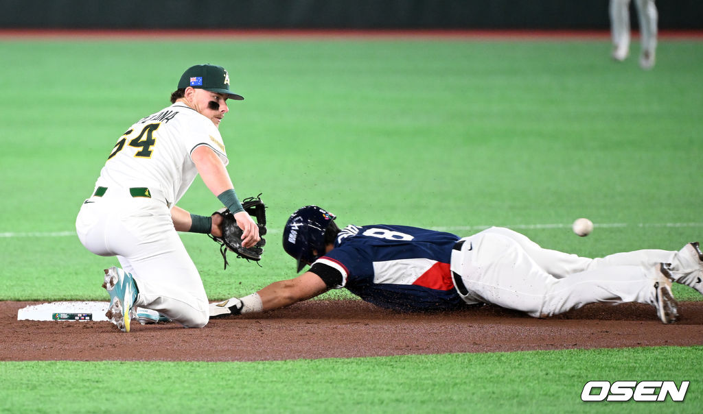 2회초 1사 1루에서 한국 1루주자 노시환이 도루에 성공하고 있다. 2026.03.09 /spjj@osen.co.kr