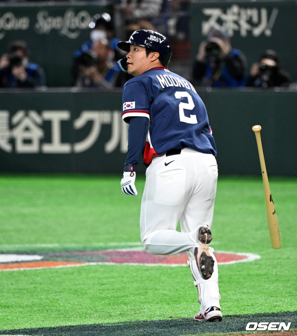 5회초 2사 2루에서 한국 문보경이 좌월 적시타를 치고 있다. 2026.03.09 /spjj@osen.co.kr