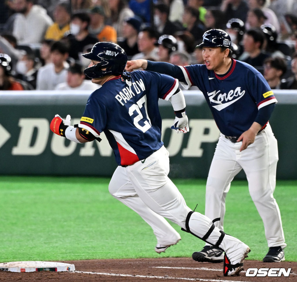 6회초 1사에서 한국 박동원이 좌월 2루타를 치고 달리고 있다. 2026.03.09 /spjj@osen.co.kr