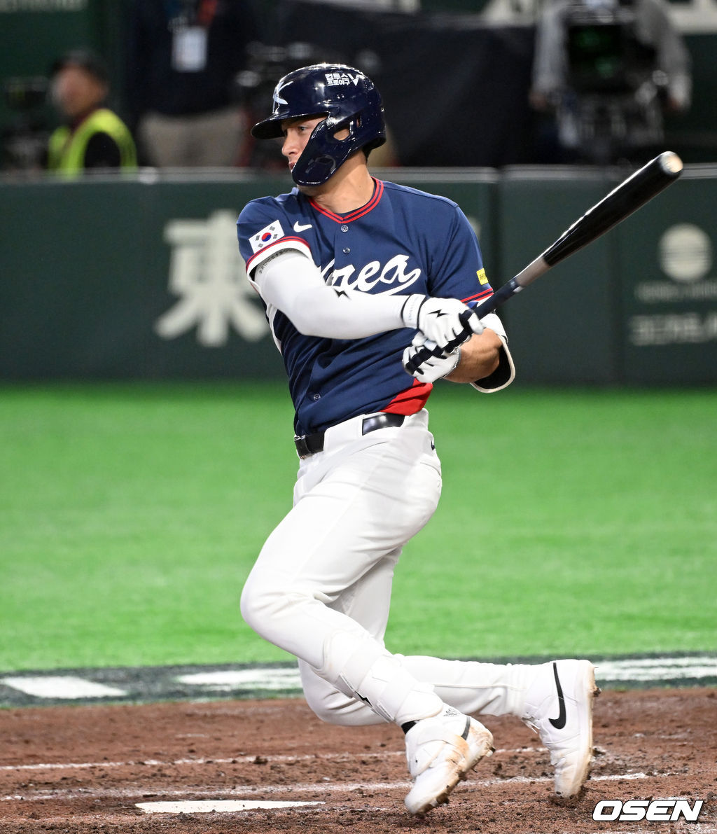 8회초 무사에서 한국 셰이 위트컴이 좌전 2루타를 치고 있다. 2026.03.09 /spjj@osen.co.kr