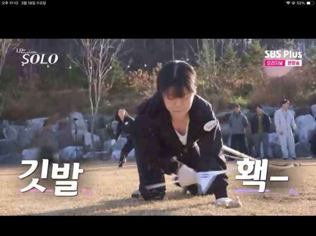 18일 방영된 SBS 예능 ‘나는 SOLO - 나는 솔로’(이하 ‘나는 솔로’)에서는 슈퍼데이트권 대회가 열렸다. 3:3 줄다리기 후 이긴 팀의 1:1:1 줄다리기가 시작되었다. 각 한 명씩 두 사람씩 매달고 목적 지점에 있는 깃발을 따내는 게 게임 규칙이었다.