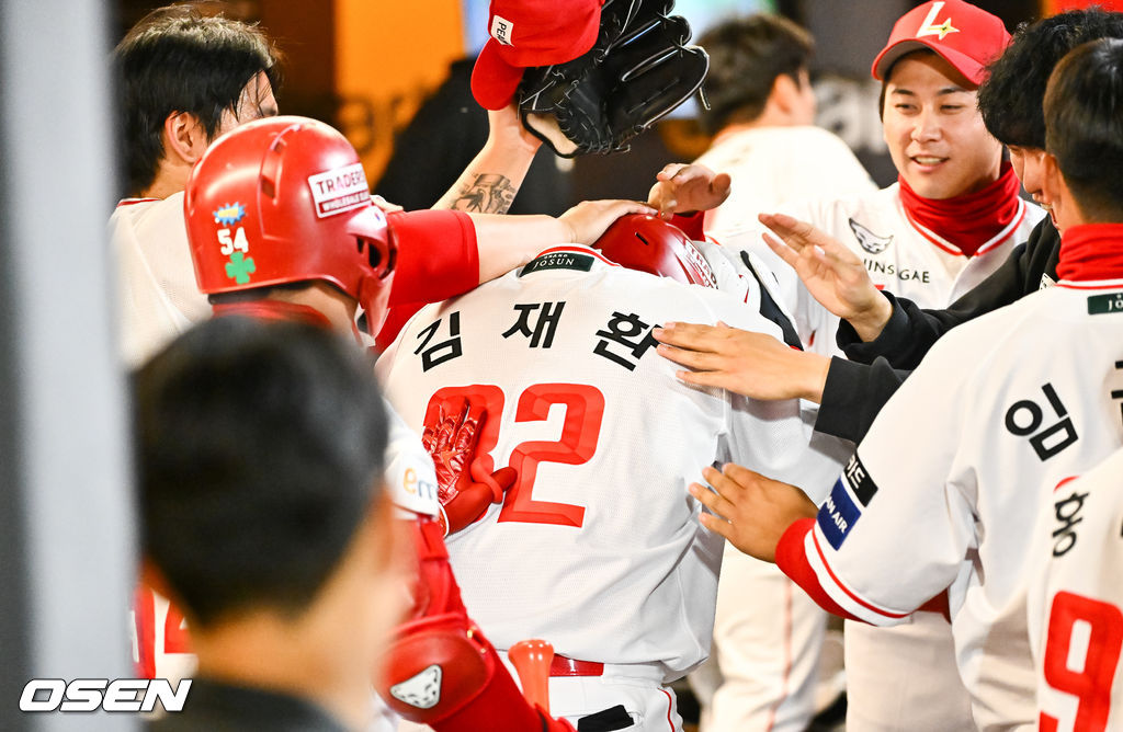 홈런을 친 뒤에도 김재환은 과하게 감정을 드러내지 않았다. 묵묵히 베이스를 돌았고, 홈을 밟은 뒤에야 미소를 보였다. 동료들과 준비한 세리머니를 소화했고, ‘무관심 세리머니’ 속에서도 끝까지 웃음을 잃지 않았다.