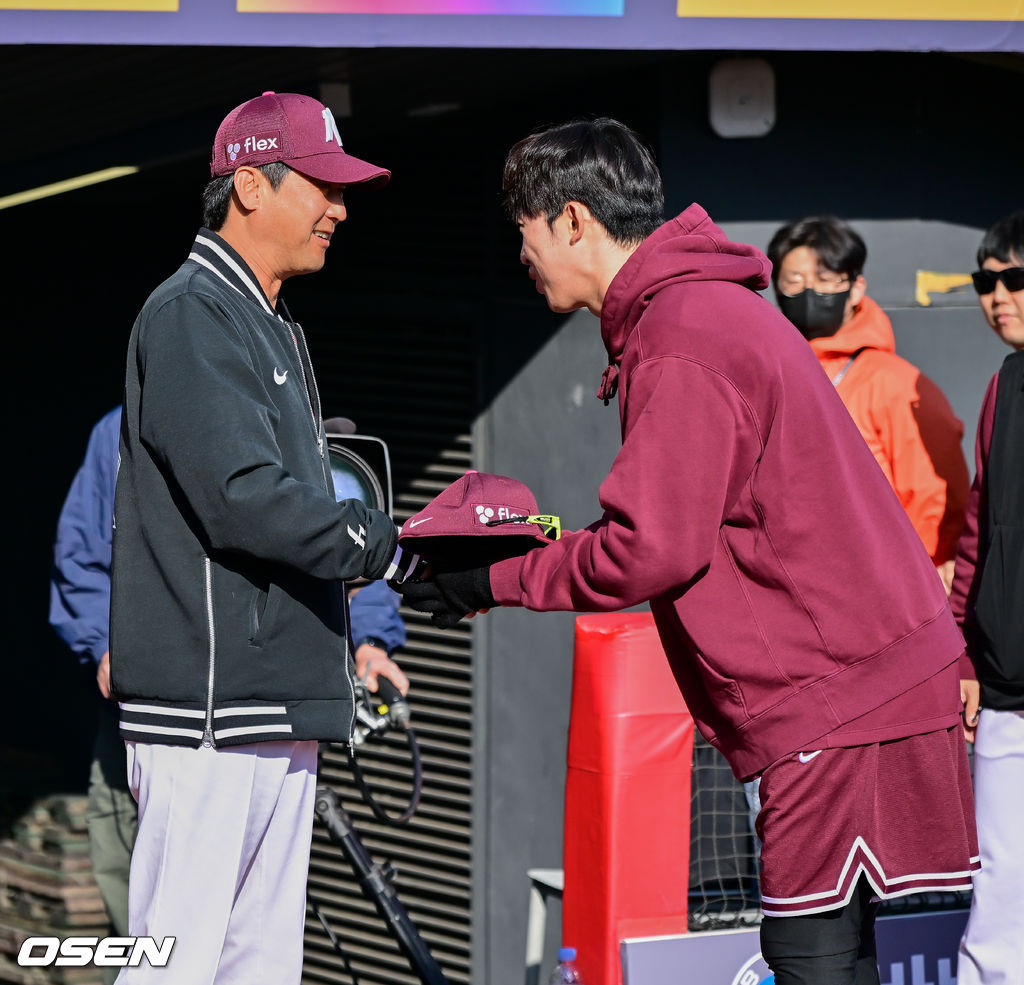 이날 경기 전에는 부임 첫 승 기념 꽃다발 증정식이 간단히 진행됐지만, 설 감독의 시선은 행사 이후에도 자연스럽게 그라운드에 머물렀다. 선수단 주변을 한동안 지키던 그는 전날 선발로 호투한 배동현을 발견하자 먼저 다가가 악수를 청하며 고마움을 전했다.