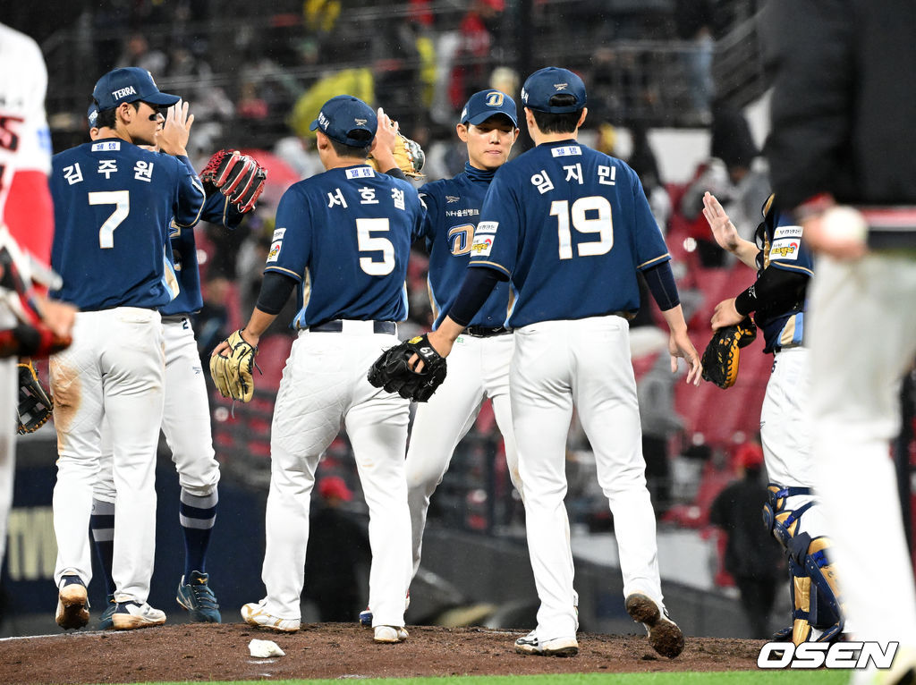 경기 종료 후 NC 선수들이 승리의 기쁨을 나누고 있다. 2026.04.03 /sunday@osen.co.kr