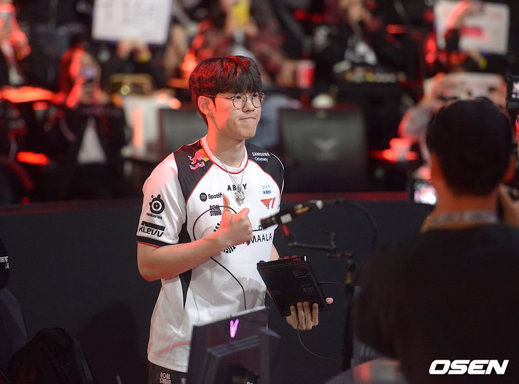 ‘도란’ 최현준의 무리한 진입에 한화생명에게 기회가 돌아갔지만, ‘페이커’ 이상혁이 노련하게 상대 핵심 선수인 ‘제카’ 김건우의 탈리야를 잡으면서 T1이 한화생명을 무너뜨리고 시즌 첫 승전고를 울렸다. / scrapper@osen.co.kr