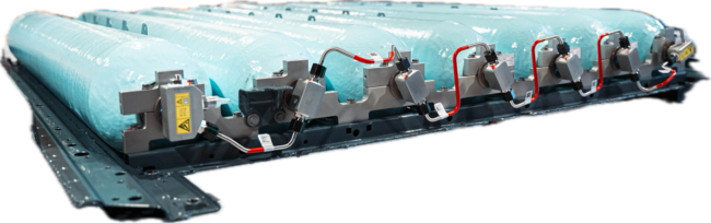 새로운 수소 저장 기술은 탄소 섬유 강화 플라스틱 소재의 고압 탱크 7개를 병렬로 연결해 하나의 견고한 프레임으로 통합했다. 개별 압력 용기 대신 다수의 체임버를 하나의 밀폐형 유닛으로 구성했으며 중앙 메인 밸브를 통해 제어한다. 수소는 최소 7kg 이상 저장되고 텅 빈 상태에서도 약 5분 이내 완전 충전이 가능하다.