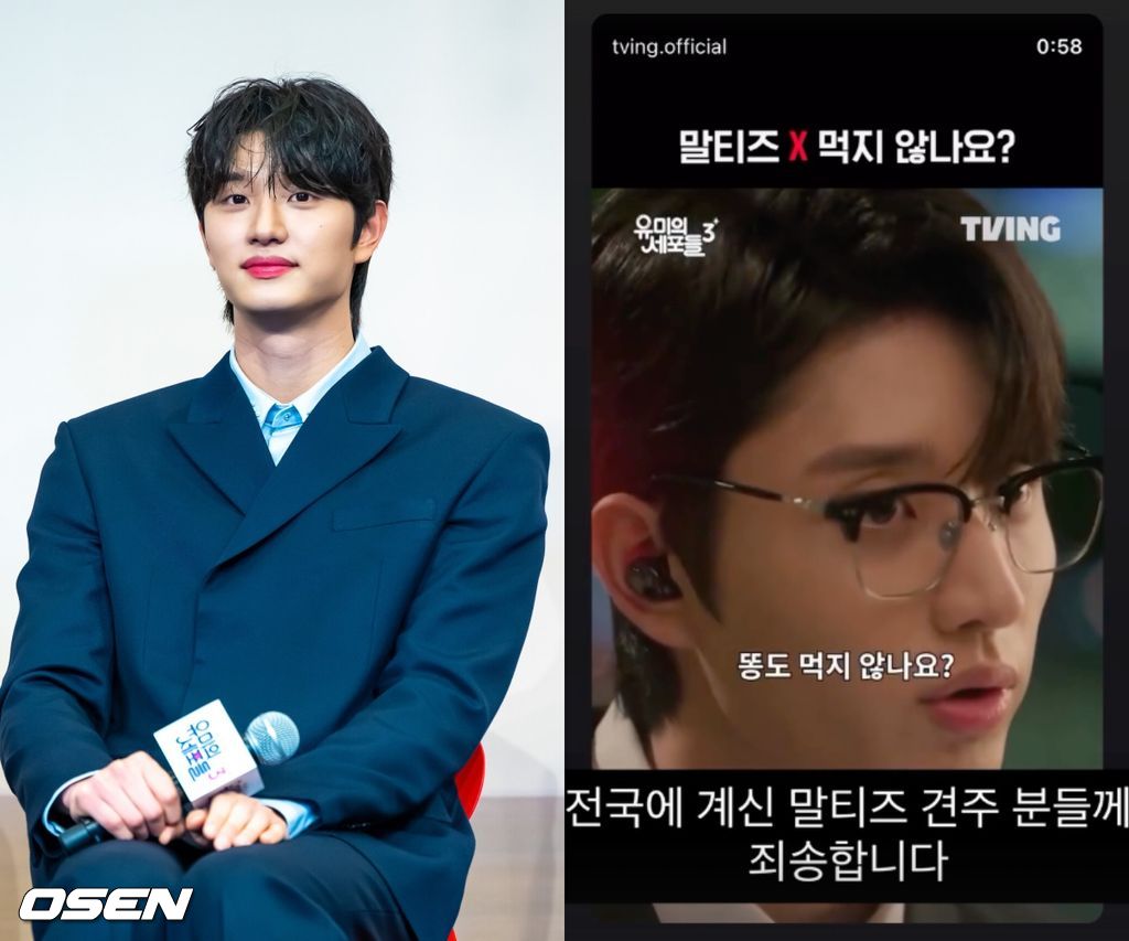 김재원은 15일 개인 SNS에 "전국에 계신 말티즈 견주 분들께 죄송합니다"라며 짧은 영상을 공유했다. 공개된 영상에는 최근 방송된 티빙 오리지널 시리즈 '유미의 세포들 시즌3(약칭 유미의 세포들3)' 속 순록(김재원 분)과 유미(김고은 분)의 모습이 담겼다.