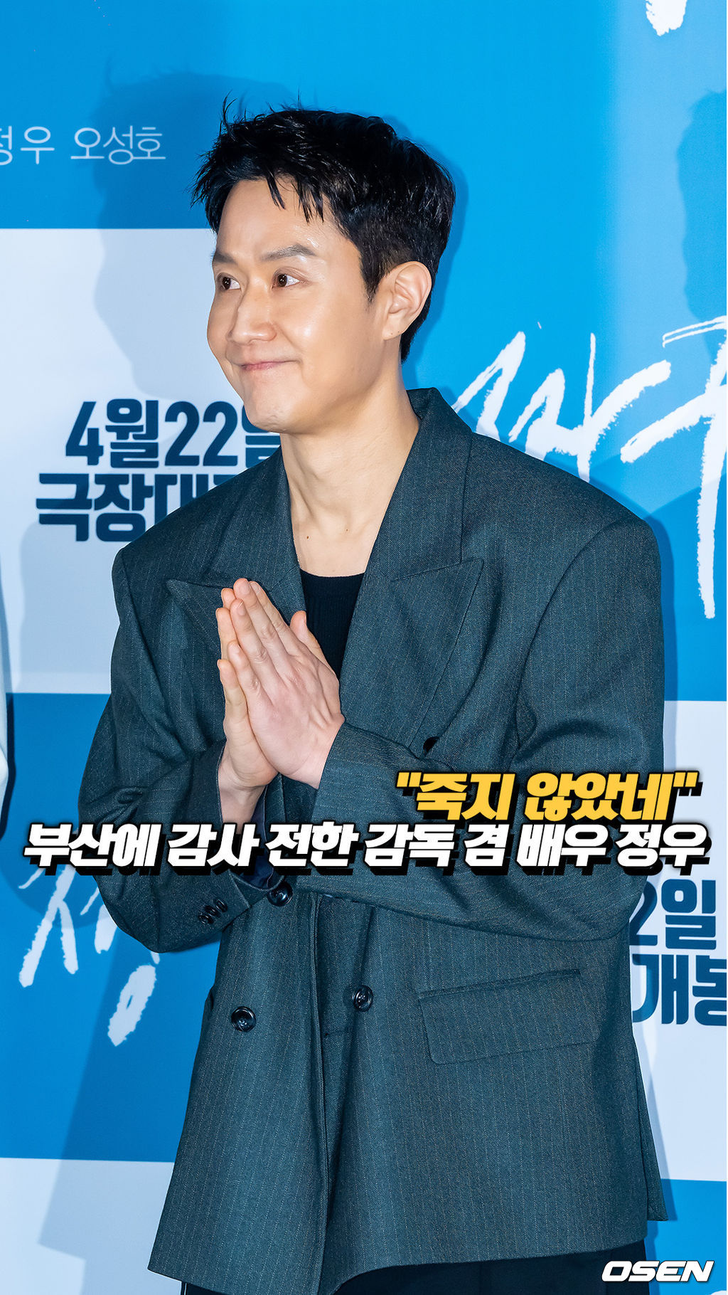 감독 겸 배우 정우가 촬영을 준비하며 부산 시민들의 도움을 받은 사연을 전하며 감사 인사를 전했다. 정우의 소감을 O! STAR 숏폼 영상에 담았다. 2026.04.16 / dreamer@osen.co.kr
