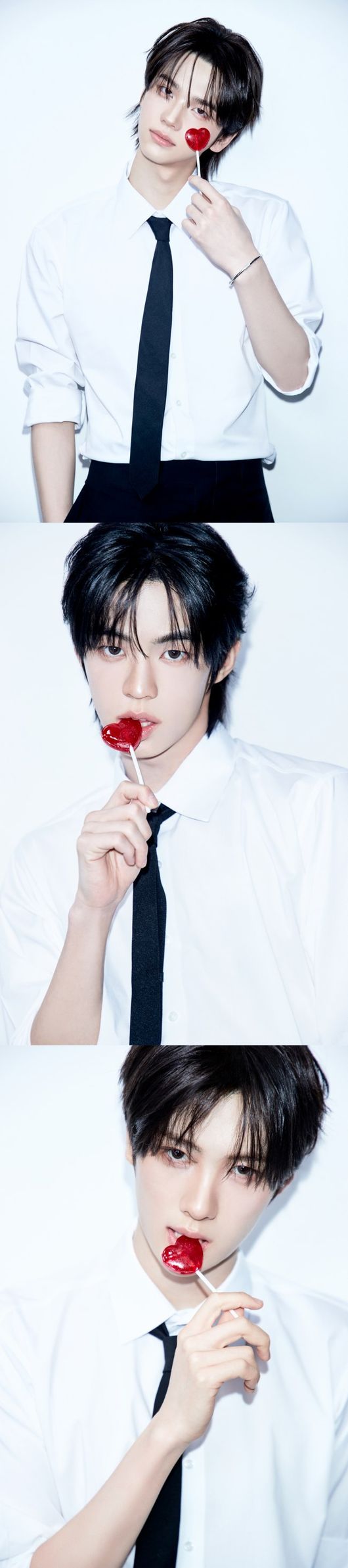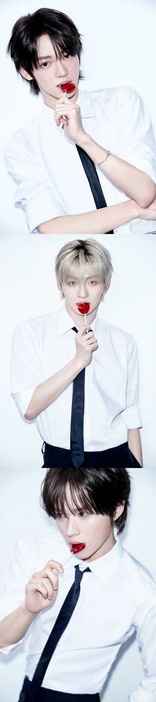 이번에 공개된 공식 사진에서 투어스 멤버들은 흰색 셔츠와 검정색 넥타이를 매치해 절제된 성숙미를 완성했다. 붉은색 하트 모양의 사탕을 물고 카메라를 응시하며 로맨틱하면서도 설렘 가득한 분위기를 연출했다.