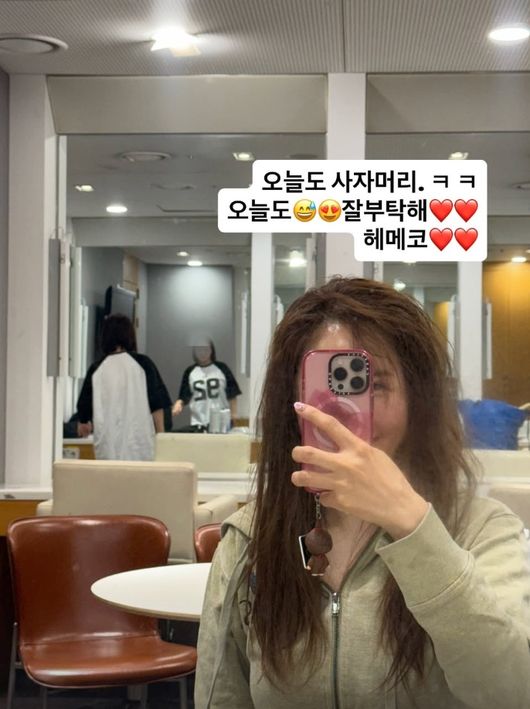 장영란은 19일 자신의 SNS를 통해 "오늘도 사자머리. ㅋㅋ 오늘도 잘 부탁해 헤메코"라는 글과 함께 사진 한 장을 올렸다.
