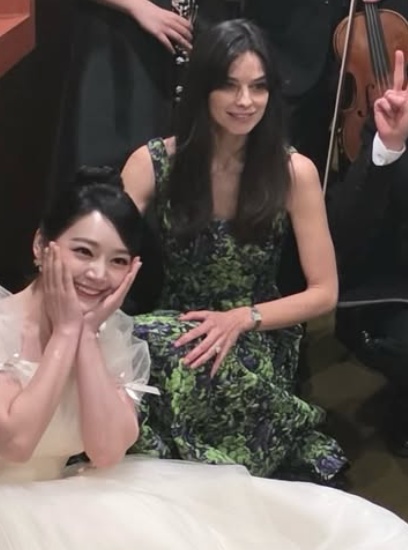 또 다른 사진에서는 김소현과 송중기 부부, 그리고 가온솔로이스츠 단원들이 함께 포즈를 취하고 있다. 송중기는 깔끔한 슈트 차림으로 여전한 '꽃미모'를 과시하고 있으며, 케이티 역시 밝은 미소로 화답하고 있다.