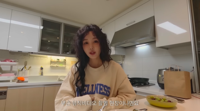 영상 속 남규리는 “지금 저는 뮤직비디오 촬영 현장에 와 있다. 저희 집 주방이다. 여러분들한테 촬영 현장을 보여드려야 된다는 생각이 들어서 카메라를 켰다”라고 말문을 열었다.
