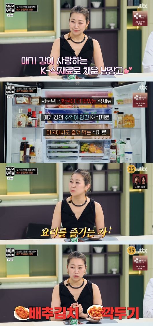 이날 미국에 거주하고 있는 매기 강의 냉장고를 가져오는 게 쉽지 않아 특별하게 매기 강이 사랑하는 K-식재료로 냉장고를 가득 채워 공개됐다.