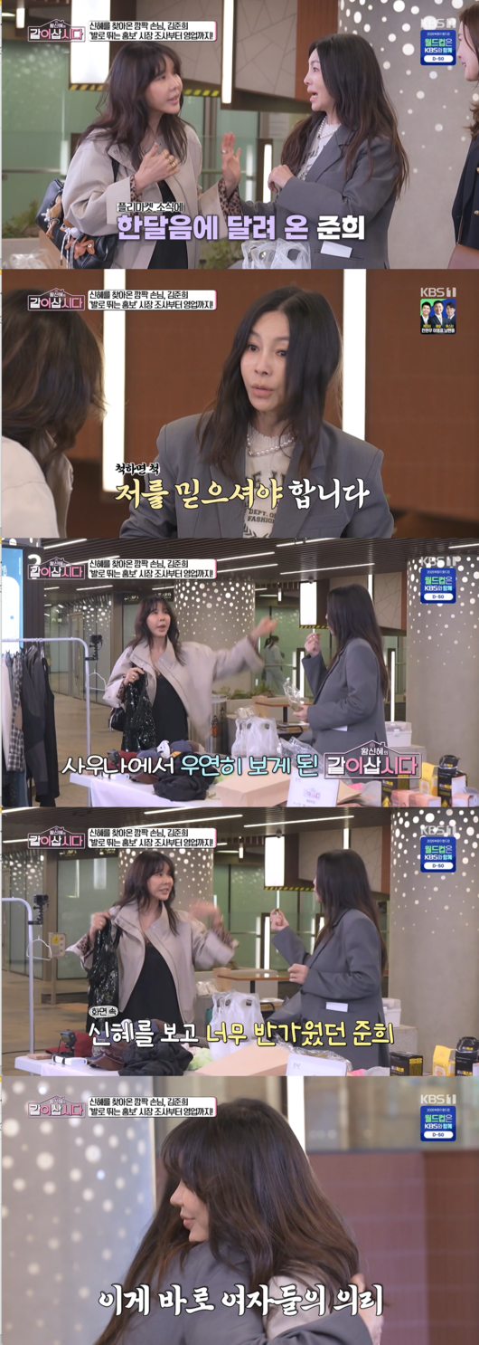 '황신혜의 같이 삽시다' 연예계 대표 패셔니스타 황신혜와 김준희가 플리마켓 현장에서 변함없는 우정을 과시했다.