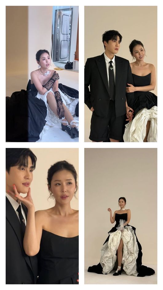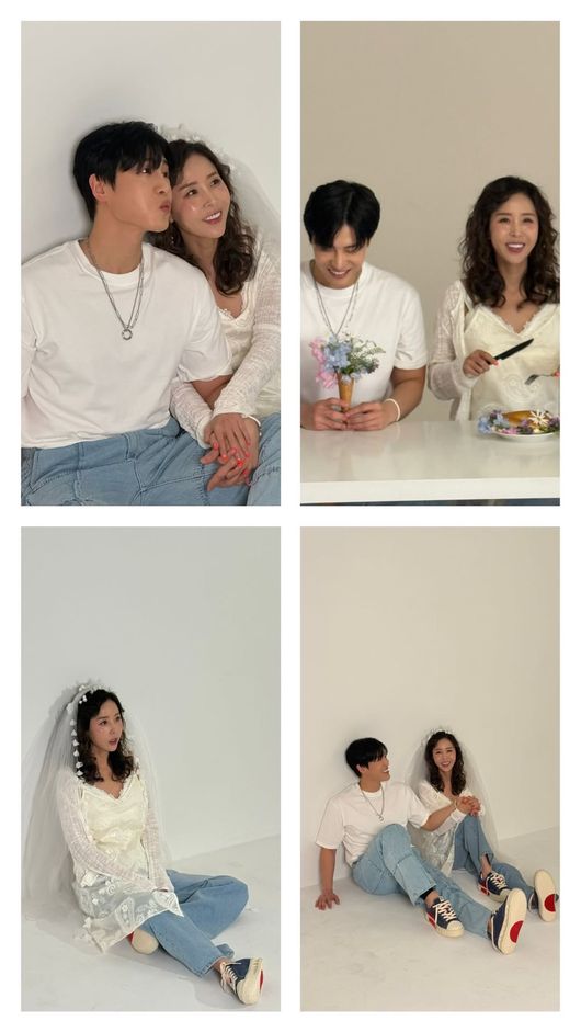 그룹 코요태의 신지가 예비 남편 문원과 달달한 웨딩 화보를 공개했다.