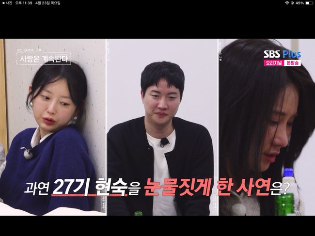 13기 상철은 영자와 대화를 하러 나가고, 영철과 남은 27기 현숙은 눈물을 쏟으며 "찌질하다"라며 스스로를 탓했다. 25기 영자는 “13기 상철을 거절할 생각을 하고 있다"라며 현숙을 달래듯 말했으나 현숙은 묵묵부답이었다./osen_jin0310@osen.co.kr