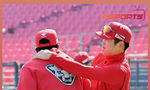 [OSEN=광주, 민경훈 기자] 13일 광주기아챔피언스필드에서 2026 신한 SOL KBO리그 시범경기KIA 타이거즈와 SSG 랜더스의 경기가 열렸다.경기 전 SSG 김민식이 그라운드 위에서 에레디아와 장난을 치고 있다. 2026.03.13 / rumi@osen.co.kr...