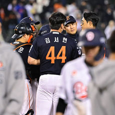 2026.04.03 22: 32미소 짓는 김경문 감독, 김서현! 고개 들어'