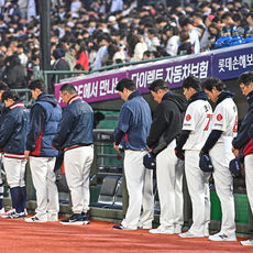 2026.04.03 19: 16김민재 추모 묵념하는 롯데 선수단