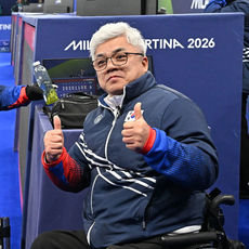 2026.03.11 14: 10휠체어컬링 믹스더블 이용석, 승리의 환호