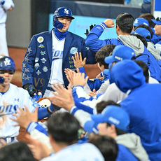 2026.04.01 20: 40구자욱, 2점 홈런 축하 인형 선물