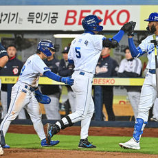 2026.04.01 20: 40구자욱, 2점 홈런 하이파이브