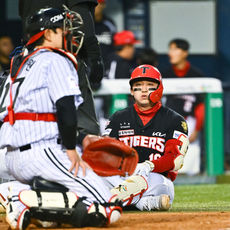 2026.04.01 19: 02영리한 기습 번트 안타 성공 시키는 구본혁, 한 점 더 추가합니다