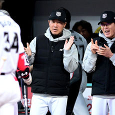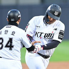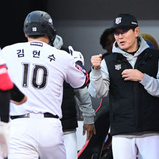 2026.04.21 19: 06'1회 선제 투런포' 김현수 맞이하는 KT 이강철 감독