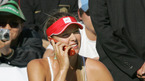 러시아의 테니스 요정 마리아 샤라포바가 3일 서울 올림픽공원에서 끝난 여자프로테니스(WTA) 2004한솔코리아오픈 결승전에서 폴란드의 도마초프스카를 꺾은 뒤 핸드폰으로 어머니에게 우승 소식을 알리고 있다./ 손용호기자