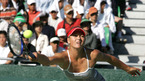 샤라포바가 3일 서울 올림픽공원에서 벌어진 여자프로테니스(WTA) 2004한솔코리아오픈 결승 1세트 4번째 게임에서 도마초프스카의 구석을 찌르는 공격을 양손 백핸드 스트로크로 받아 넘기고 있다./ 손용호기자