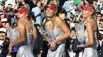 3일 서울 올림픽공원에서 벌어진 여자프로테니스(WTA) 2004한솔코리아오픈 결승전이 끝난 뒤 승자 샤라포바(오른쪽)와 패자 도마초프스카가 서로의 볼을 비비는 키스로 인사를 나누고 있다. /손용호기자