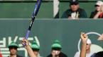 3일 서울 올림픽공원에서 벌어진 여자프로테니스(WTA) 2004한솔코리아오픈 결승전 2세트 4번째 게임서 샤라포바가 도마초프스카의 강한 스매싱을 팔을 쭉 뻗어 받아치고 있다. 그러나 아깝게 아웃이 되고 말았다. /손용호기자