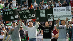여자프로테니스(WTA) 2004한솔코리아오픈 결승이 벌어진 3일 서울 올림픽공원에 나온 샤라포바(러시아)의 팬들이 한글과 러시아어로 된 플래카드를 들고 응원하고 있다./손용호기자