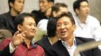 프로농구 시범경기가 열린 15일 잠실체육관에서 허재 원주 TG삼보 코치가 중앙대와 팀 후배인 김주성의 아버지 김덕환씨를 만나 반갑게 얘기를 나누고 있다. /손용호 기자