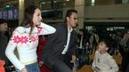 15일 인천공항을 통해 입국한 일본 지바 롯데 마린스의 이승엽이 부인 이송정씨와 함께 사진기자들을 위해 포즈를 취해주고 있다./인천=손용호 기자(폭탄뉴스.com)