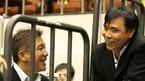 일시 귀국한 허재 원주 TG삼보 코치가 15일 잠실체육관을 찾아 유재학 울산 모비스 감독(왼쪽)과 시범경기를 관전하며 담소를 나누고 있다. /손용호기자
