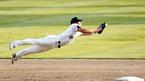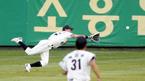 17일 플레이오프 4차전 9회초 1사 후 삼성 조동찬의 좌중간 타구를 두산 좌익수 최경환이 다이빙해 잡으려 했으나 놓치고 있다. 결국 쐐기 실점으로 이어지고 말았다. /잠실=손용호 기자