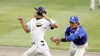 17일 플레이오프 4차전 8회말 무사 1루서 임재철의 땅볼을 잡은 2루수 박종호가 병살을 시키기 위해 1루 주자 백승훈을 태그 아웃시키고 있다. 이 순간 박종호는 왼쪽 허벅지에 심한 통증이 발생, 교체되고 말았다. /잠실=손용호